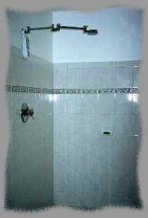 置いてある部屋です。 (井戸水は鉄分が多い。) | ルーム。 Big boy shower と呼んでいます。 |